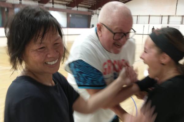 New soccer conveners Marinette, Brian and Natalie in post-game conference.